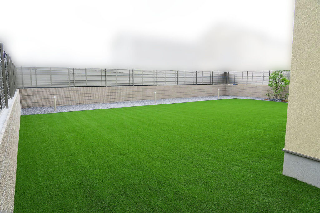 新築戸建ての庭に人工芝施工|200㎡超をノンネイル工法で“後から変えられる庭”に