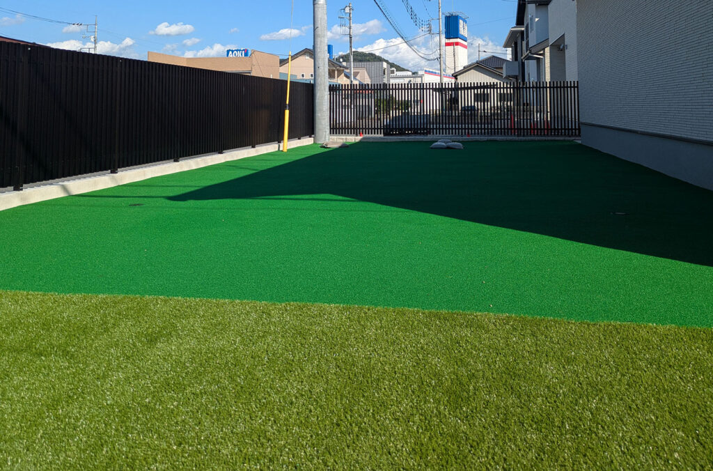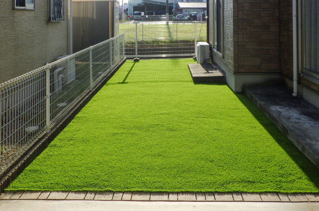 【施工事例】戸建ての細長い庭を長寿命人工芝でメンテナンスフリーに